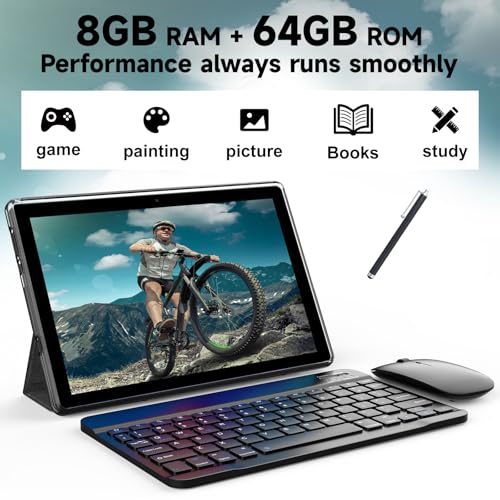 2 in 1 Tablet, 10 inch Android 13 Tablet with Keyboard, 10GB+64GB+512GB Expand Dual Camera, IPS Touch Screen Tablet Computer, WiFi, Bluetooth, Long Battery Life, Google Certified Tablet PC